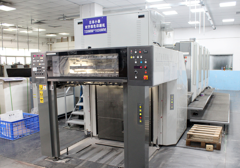 引進(jìn)德國羅蘭對(duì)開五色、羅蘭對(duì)開雙色、日本小森四開四色印刷設(shè)備,生產(chǎn)線完善